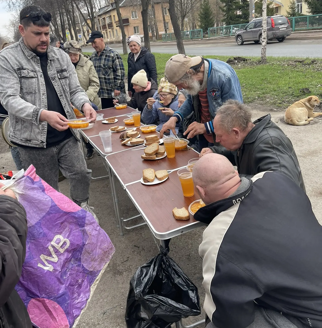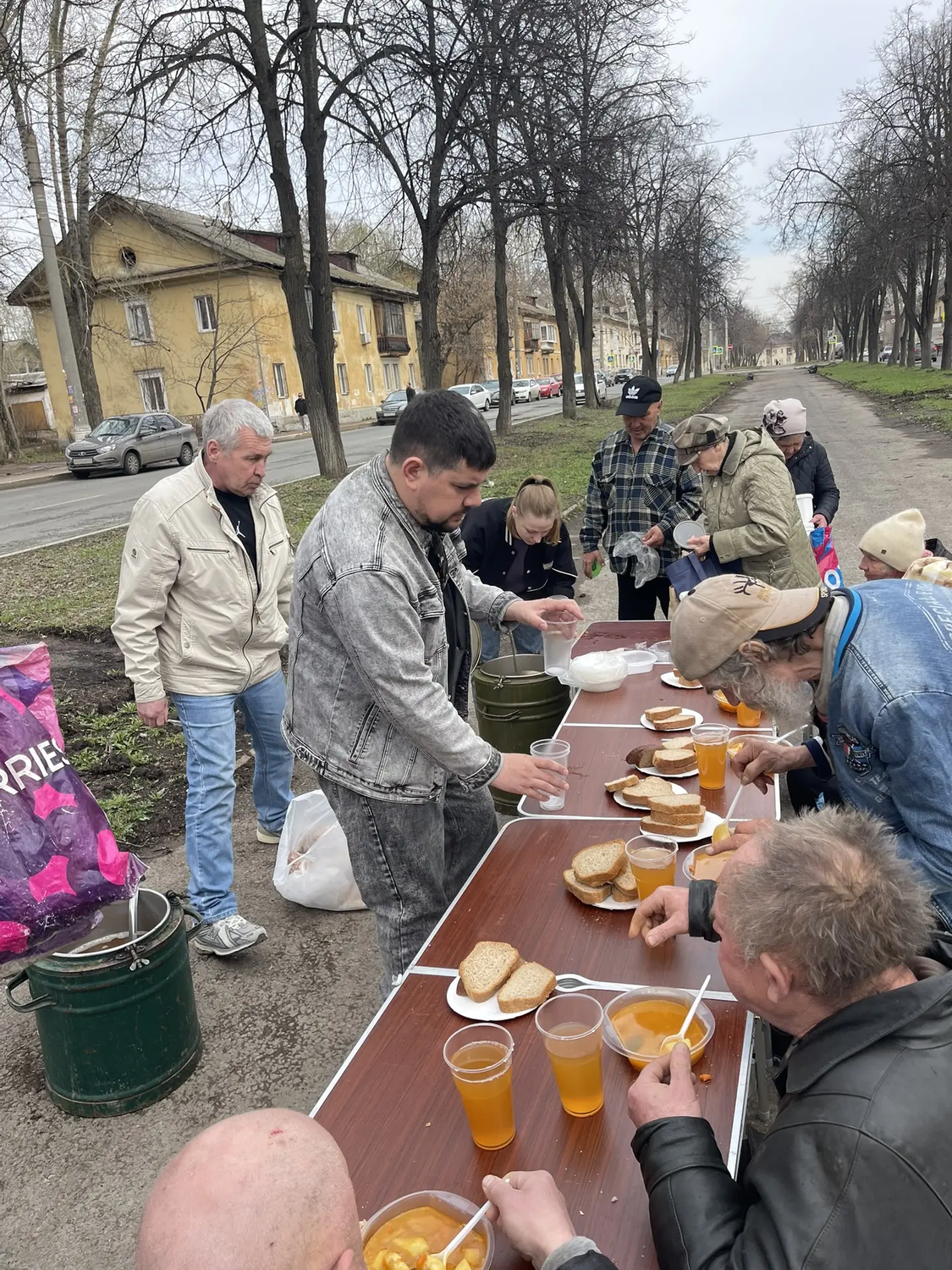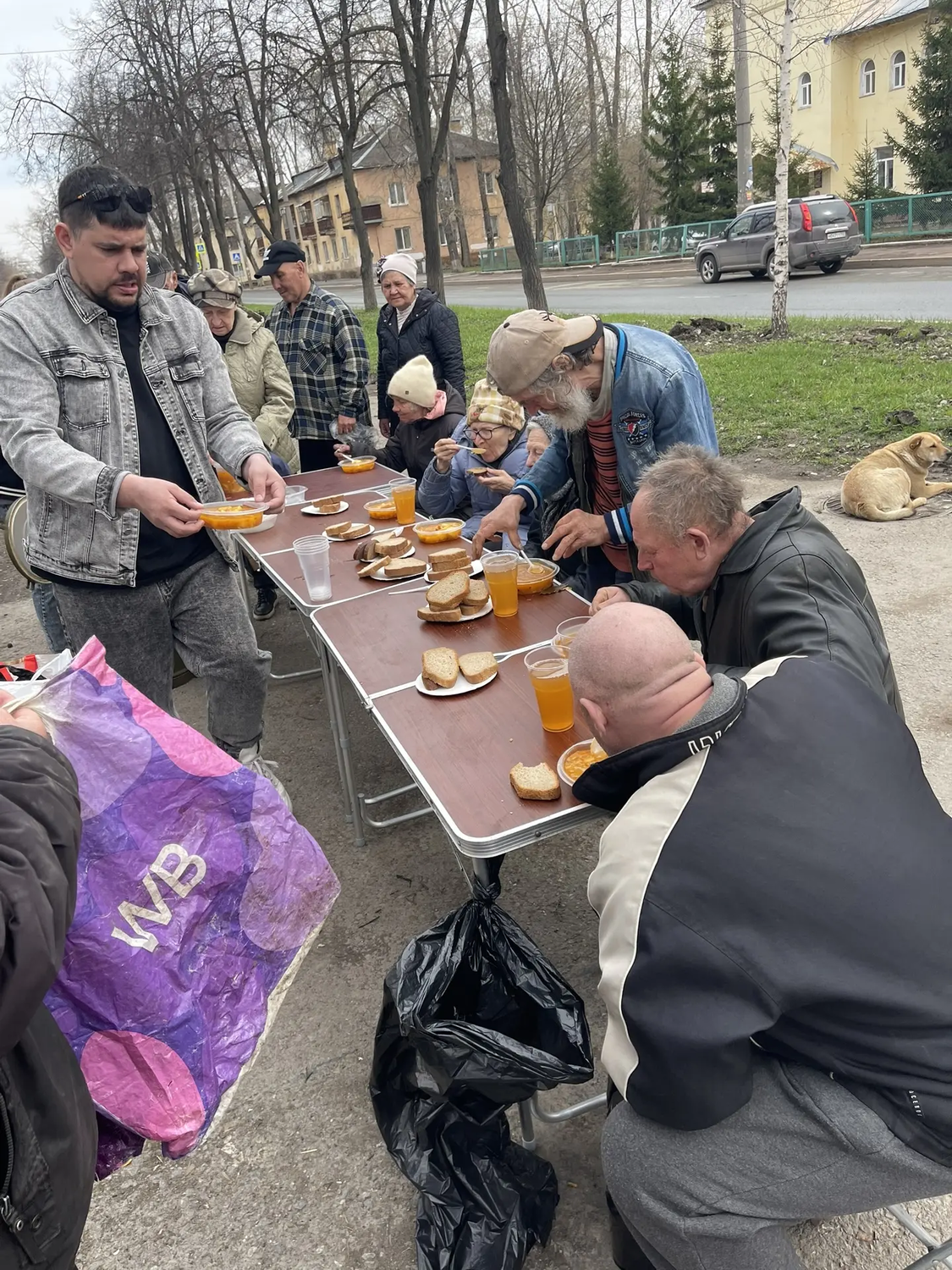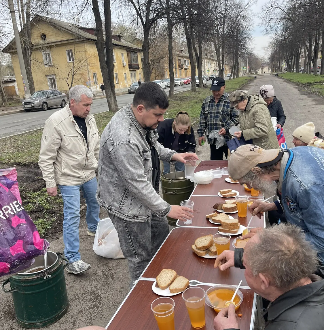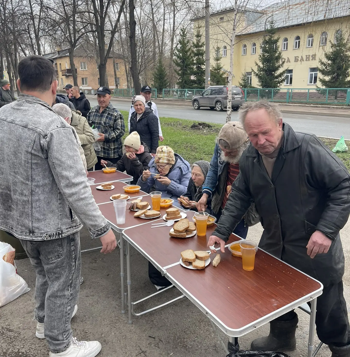 Сегодня в Великую субботу перед Пасхой мы привезли нашим подопечным очень вкусные щи с курицей, хлеб, а на десерт натуральный яблочный сок. Также была хорошая сезонная обувь для раздачи нуждающимся.