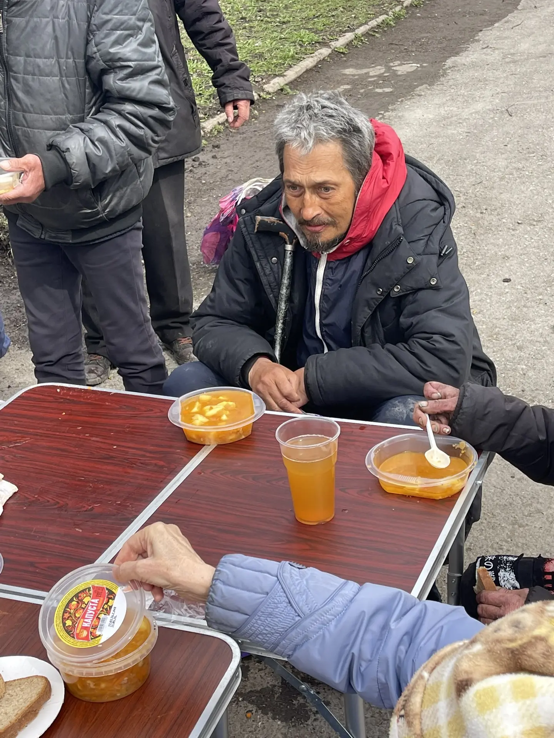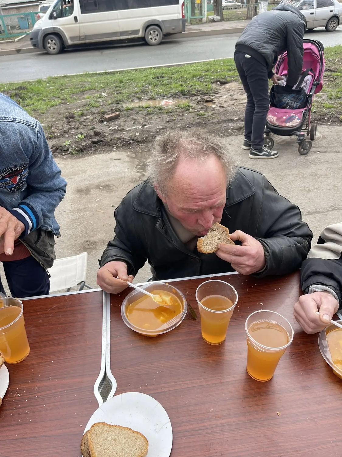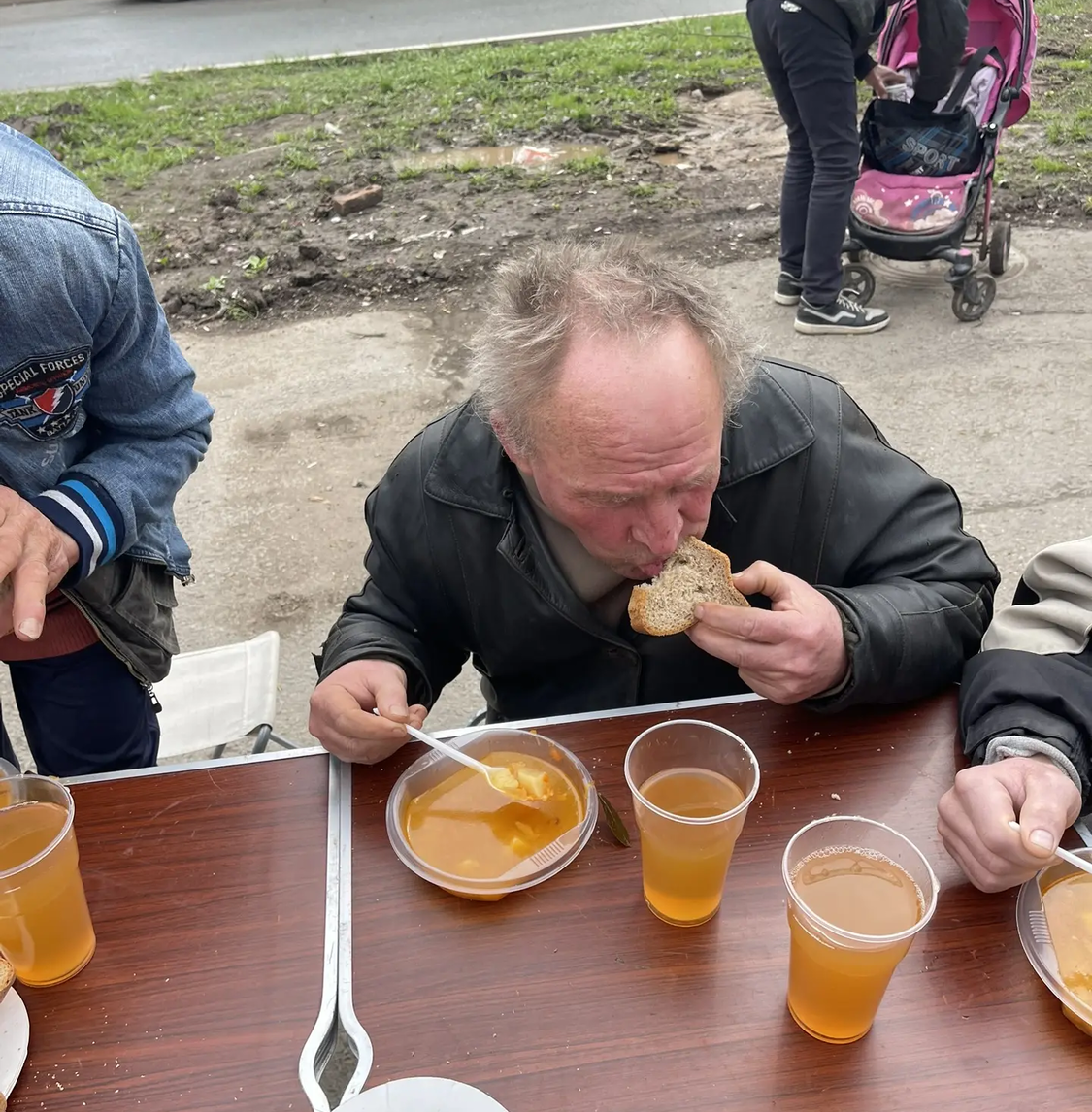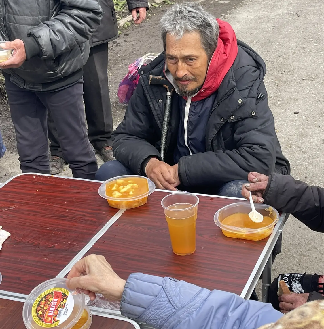 Сегодня в Великую субботу перед Пасхой мы привезли нашим подопечным очень вкусные щи с курицей, хлеб, а на десерт натуральный яблочный сок. Также была хорошая сезонная обувь для раздачи нуждающимся.
