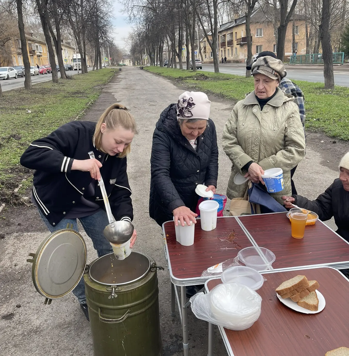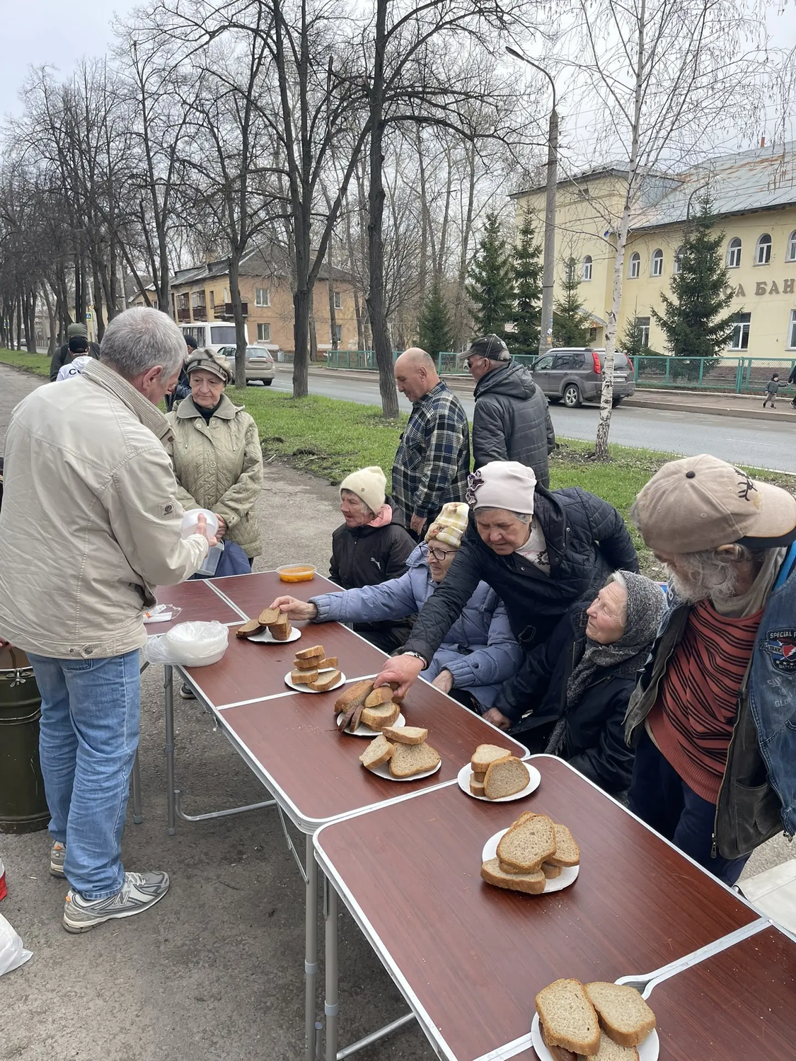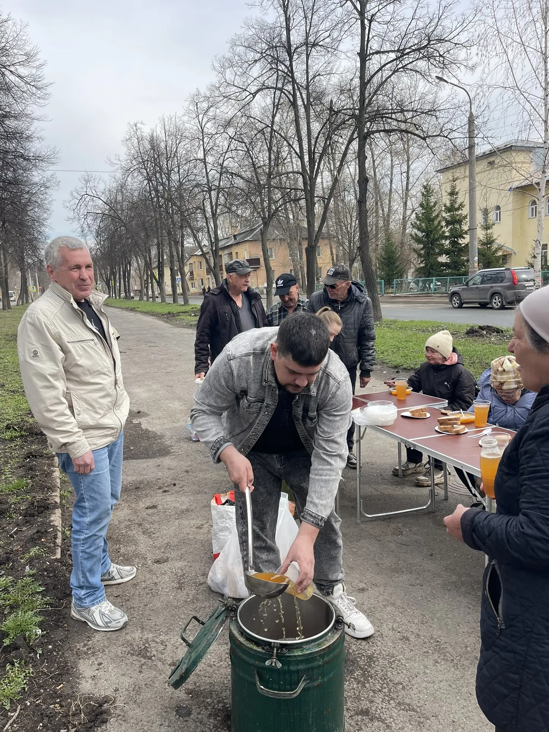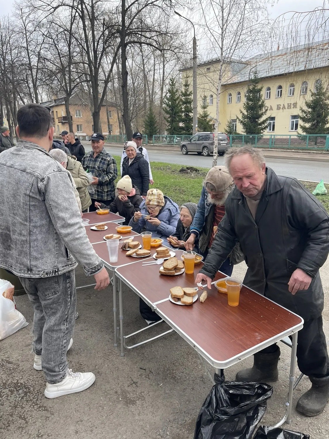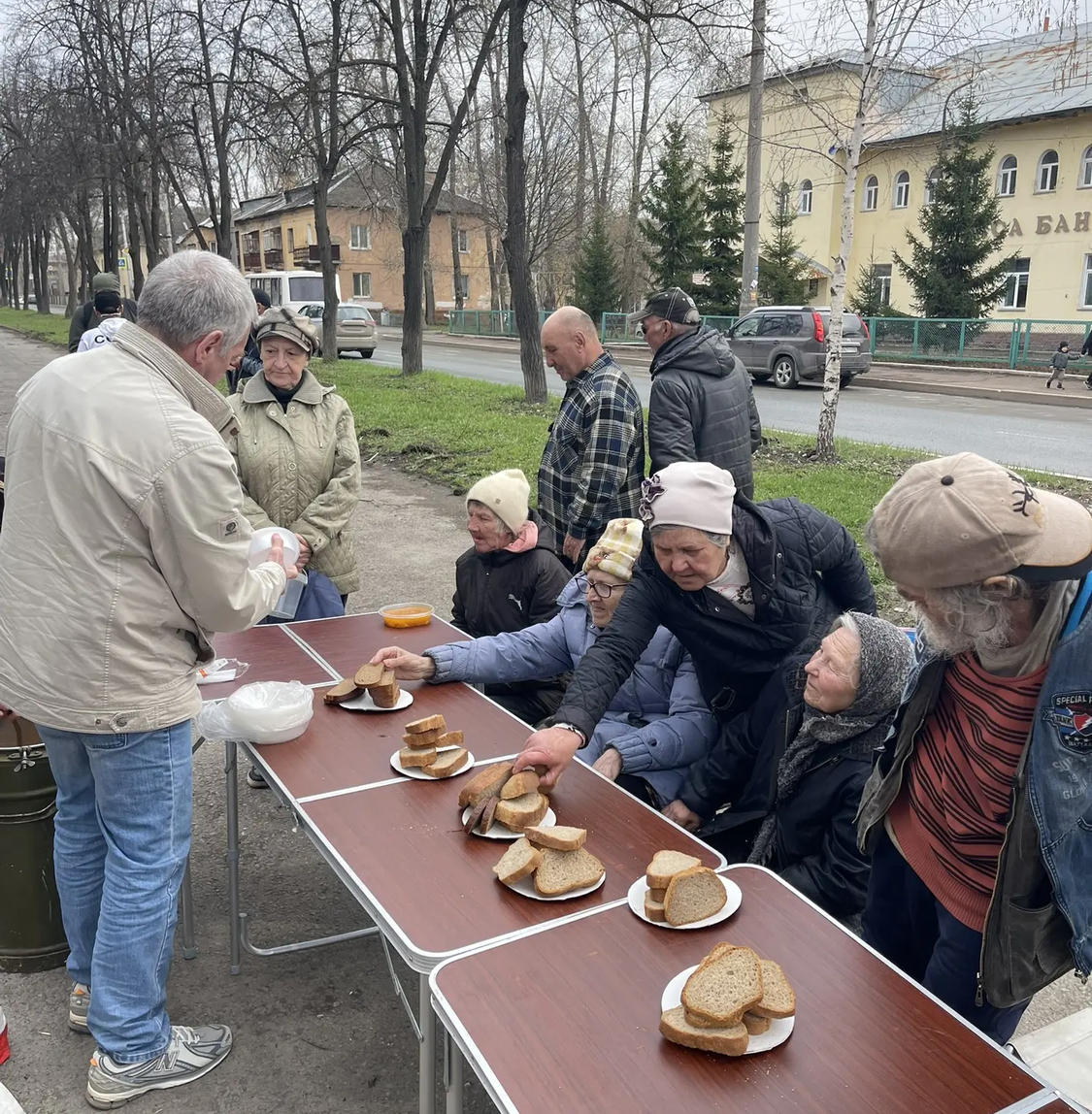 Сегодня в Великую субботу перед Пасхой мы привезли нашим подопечным очень вкусные щи с курицей, хлеб, а на десерт натуральный яблочный сок. Также была хорошая сезонная обувь для раздачи нуждающимся.