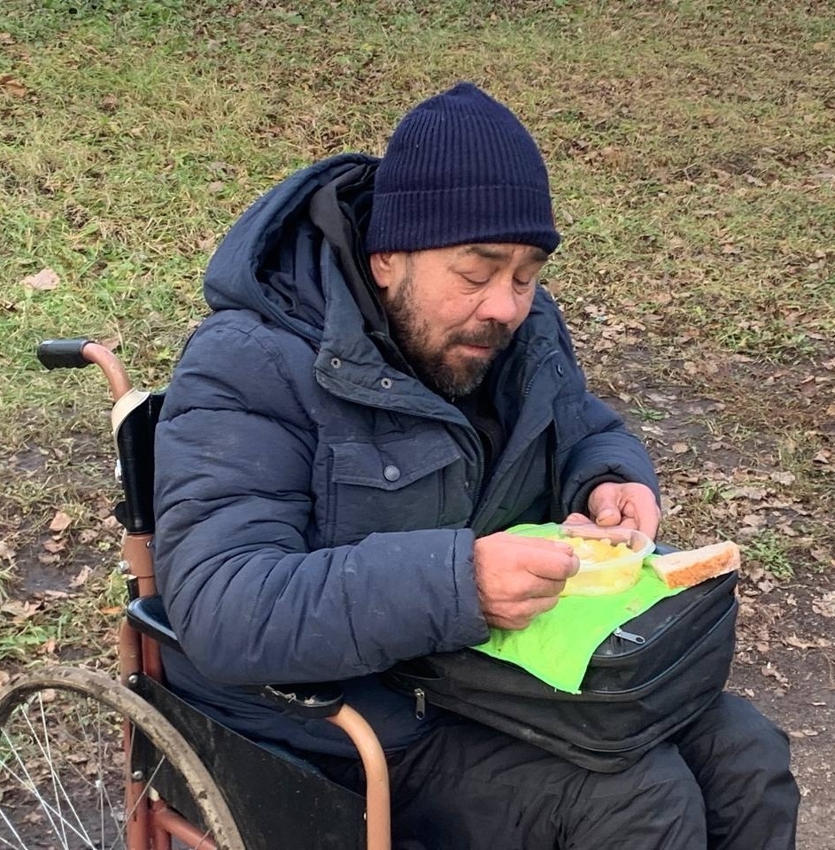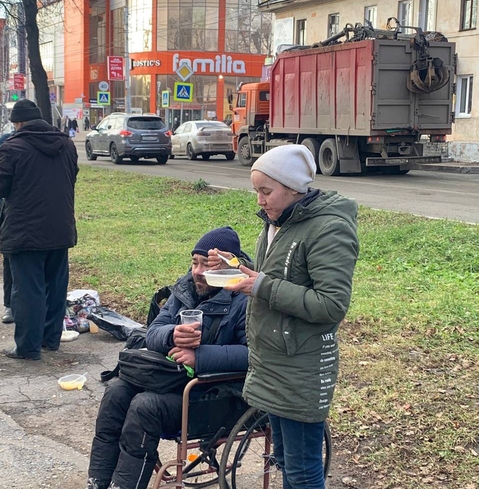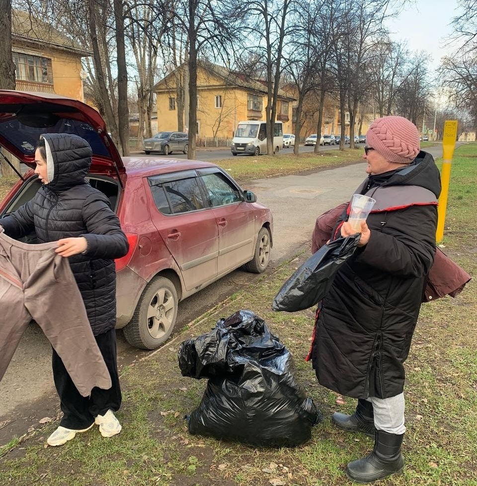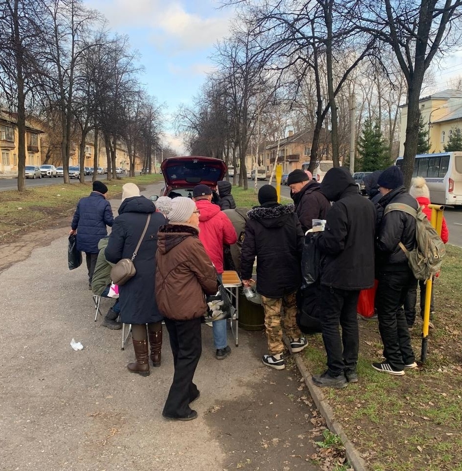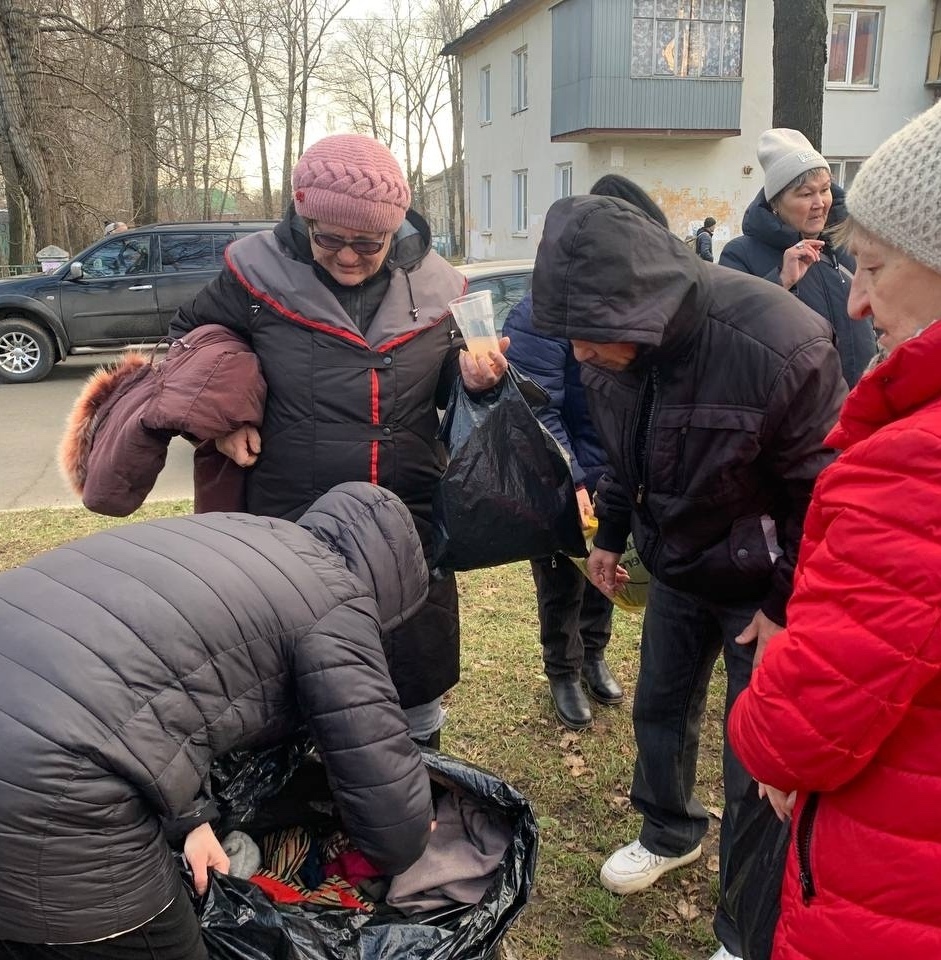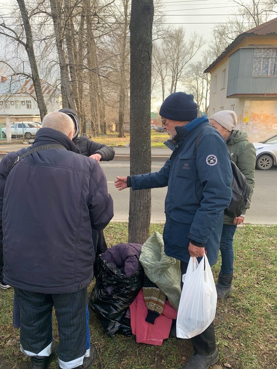 В нашем субботнем меню сегодня — рисовый суп с грибами и курицей, хлеб и фруктовый кисель. Также было много сезонных вещей для раздачи нуждающимся