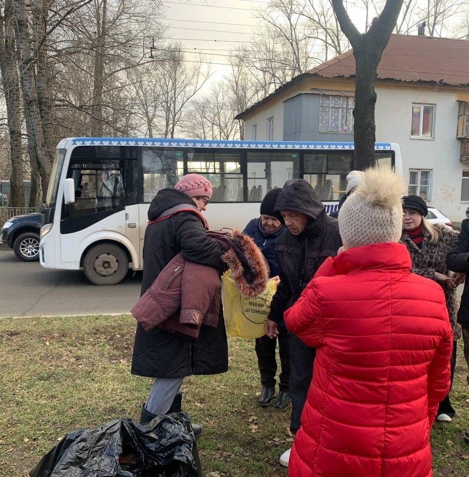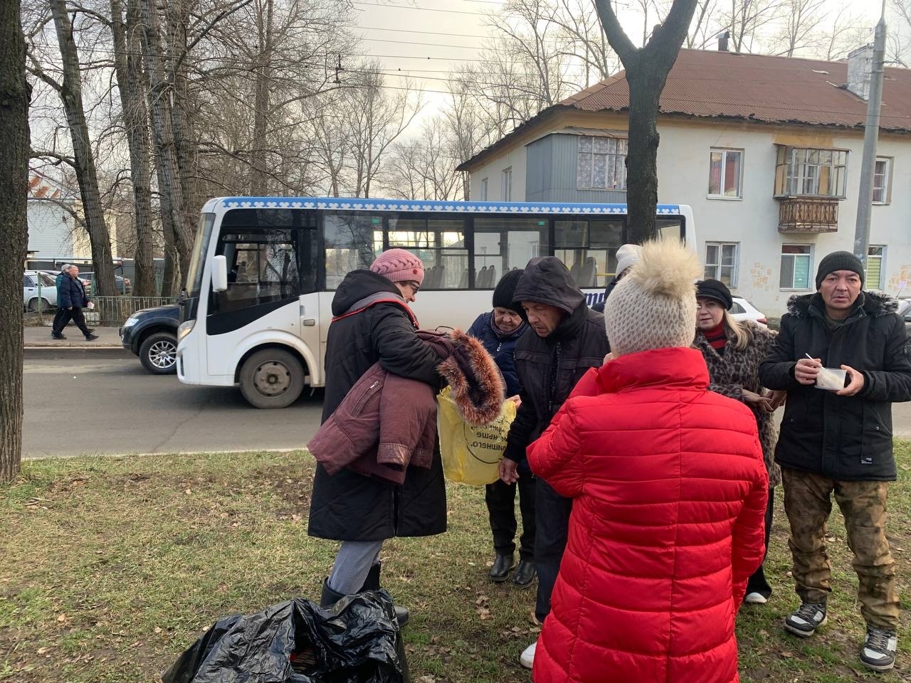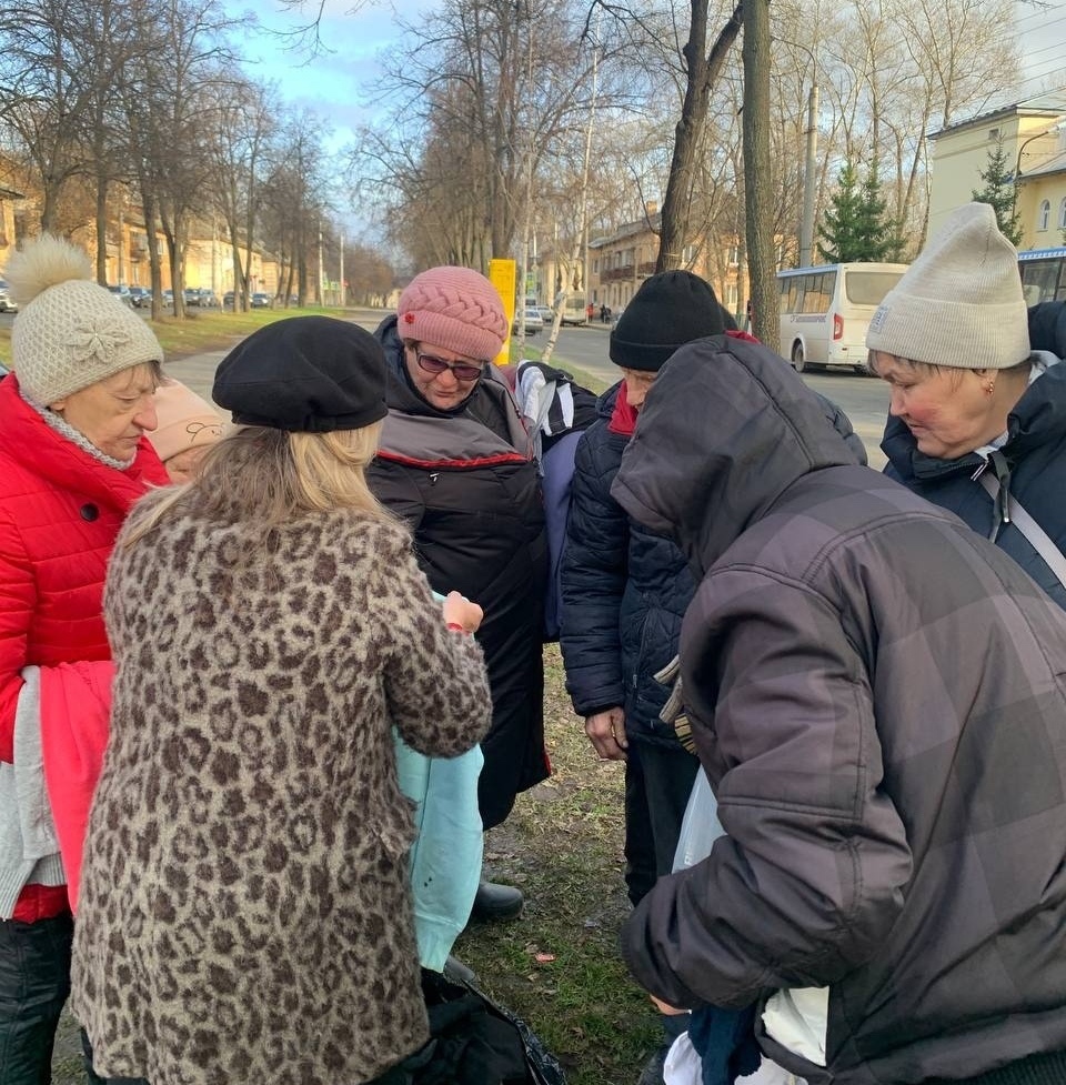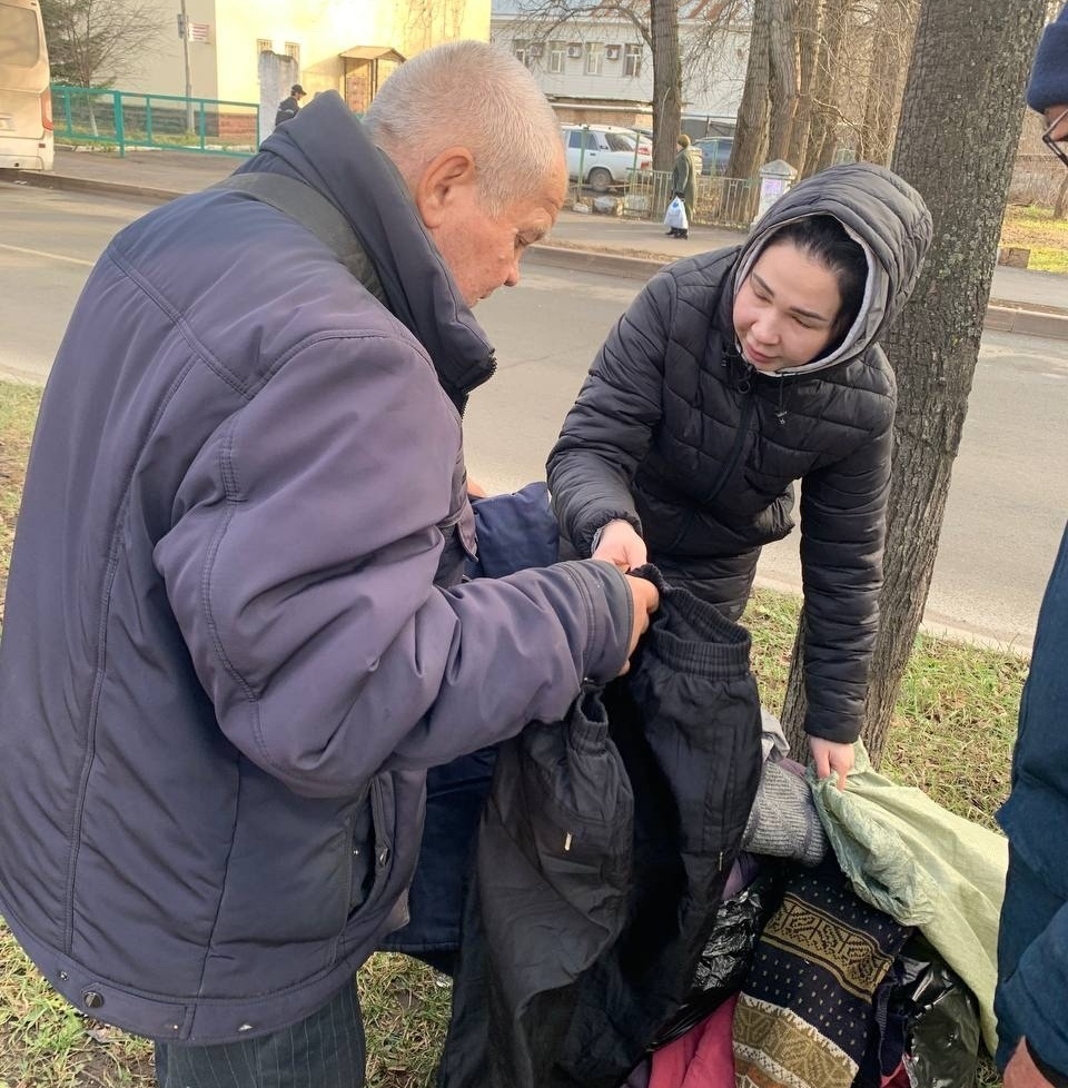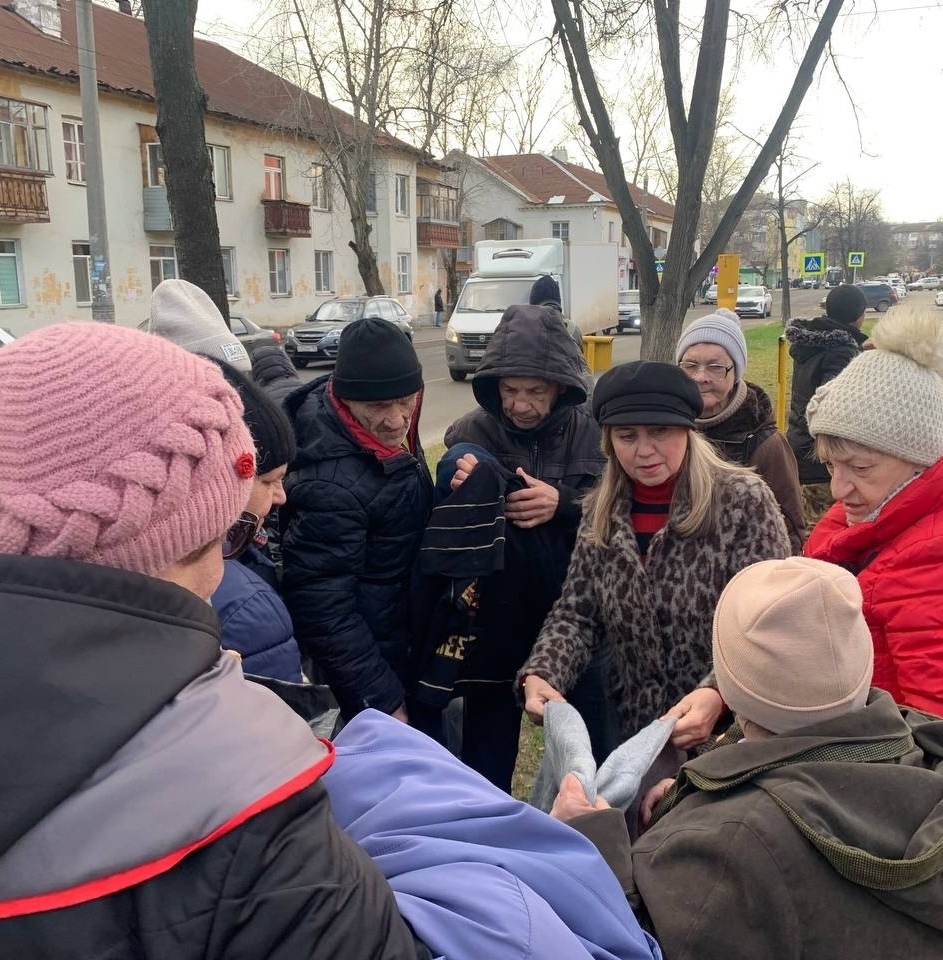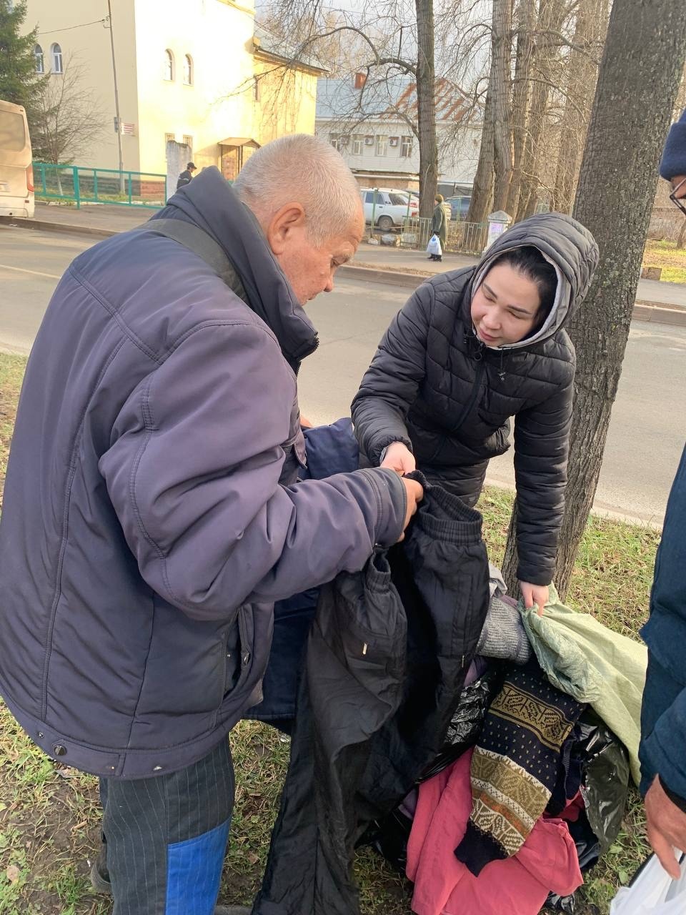 В нашем субботнем меню сегодня — рисовый суп с грибами и курицей, хлеб и фруктовый кисель. Также было много сезонных вещей для раздачи нуждающимся