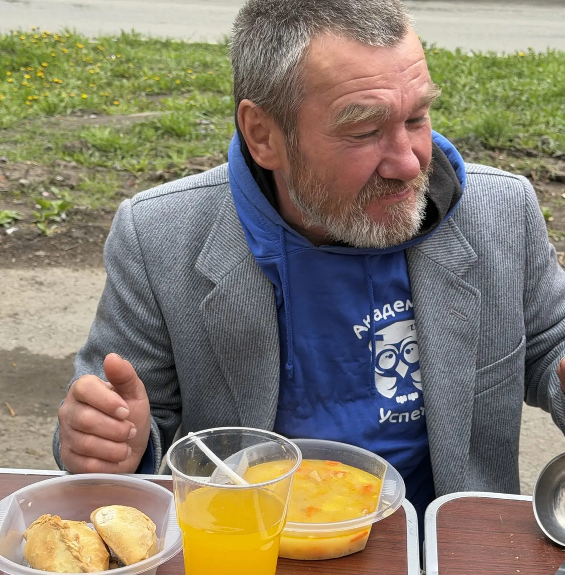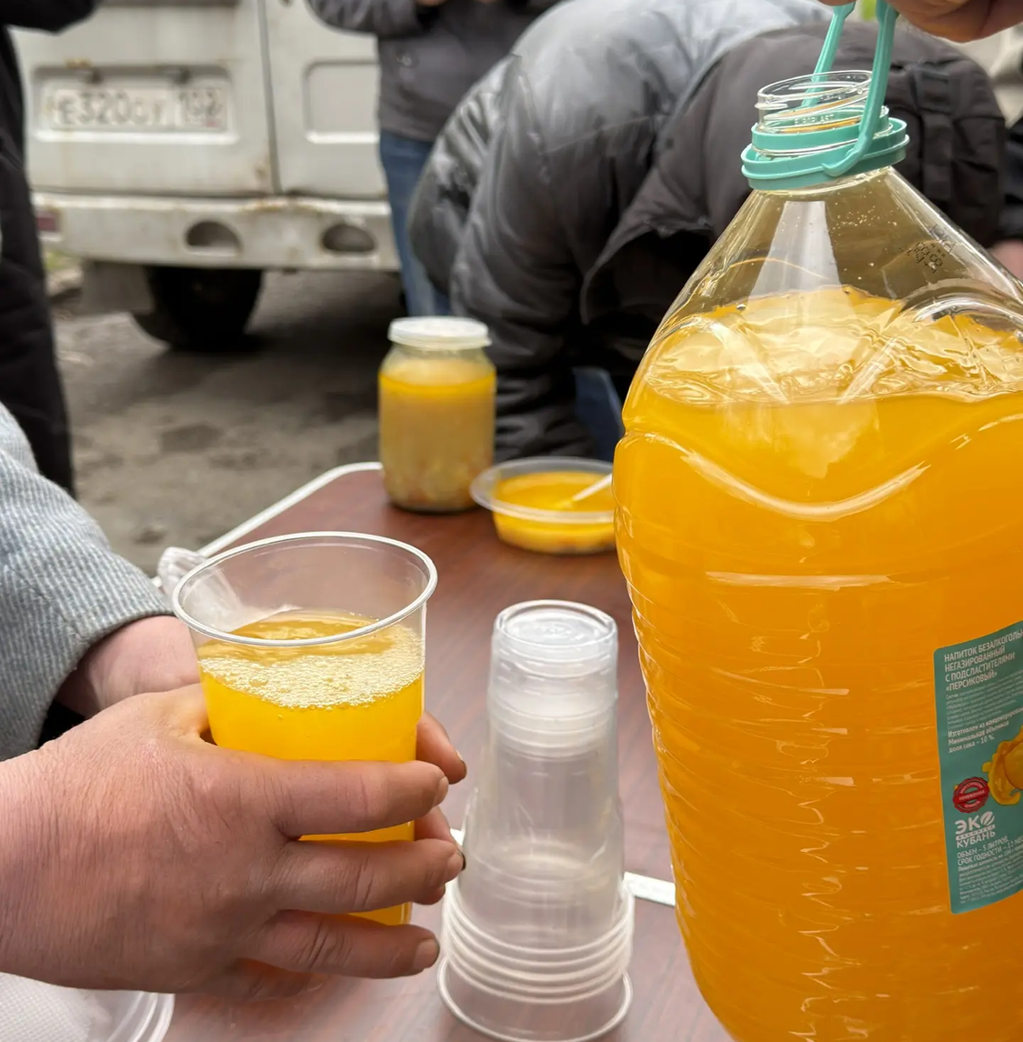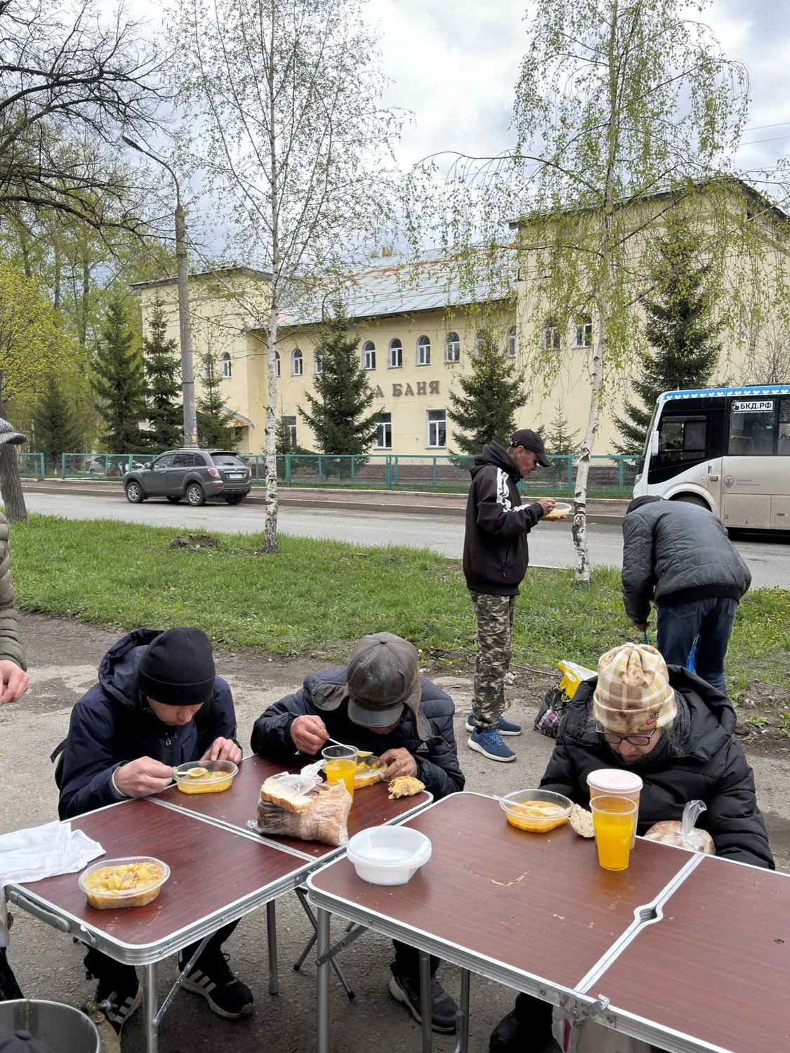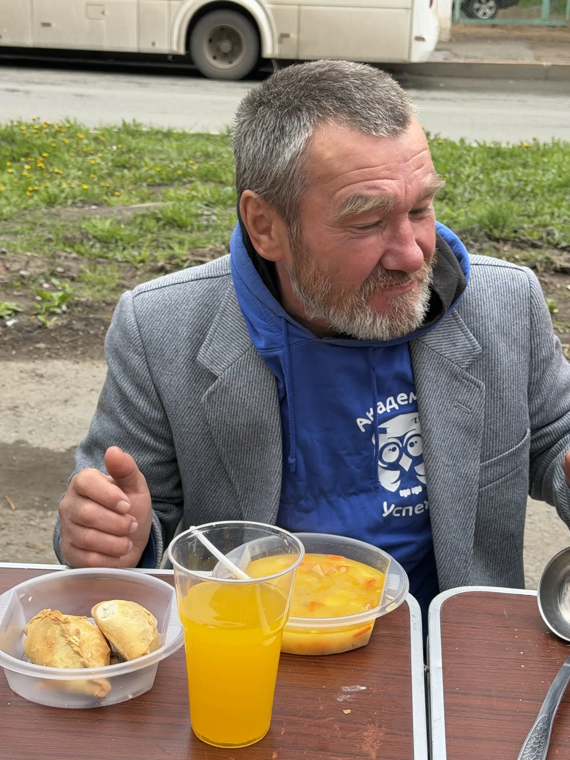 В нашем субботнем меню: очень вкусный суп-рассольник, хлеб, выпечка и персиковый сок. Равнодушных не было.