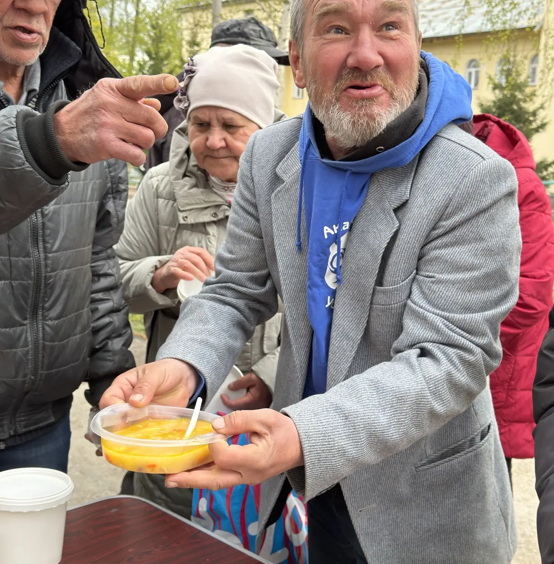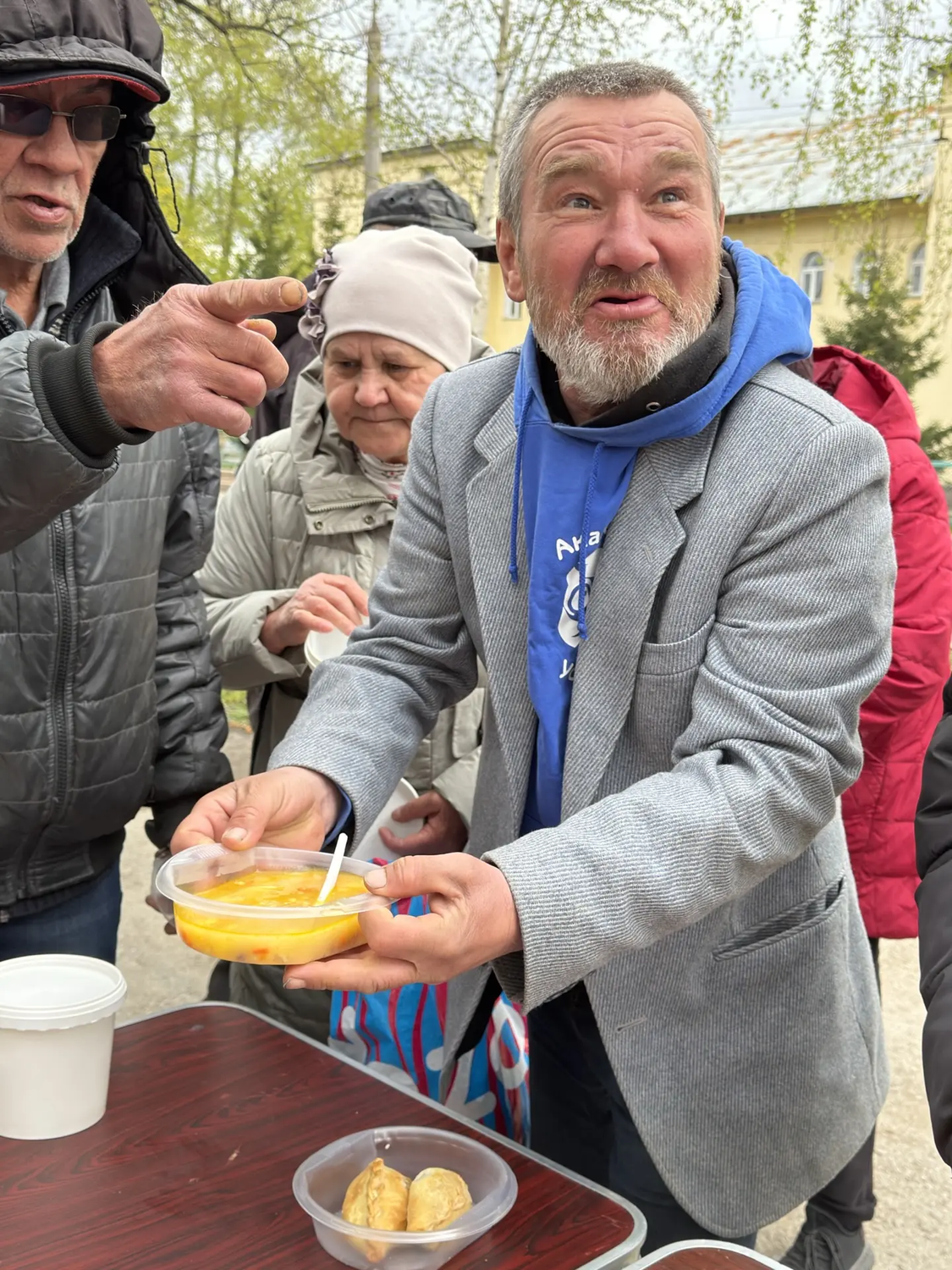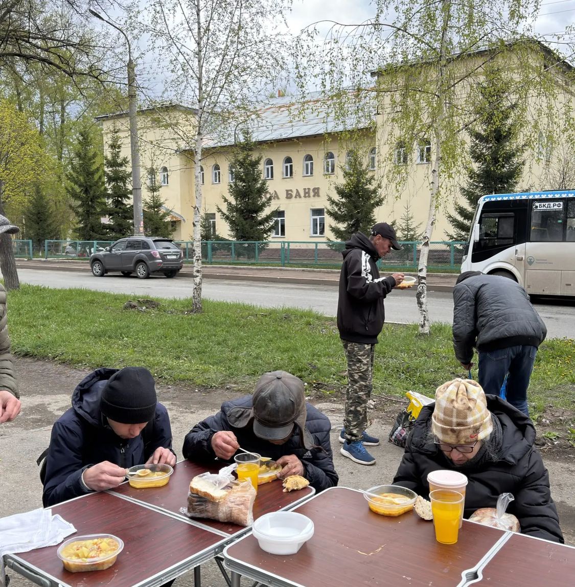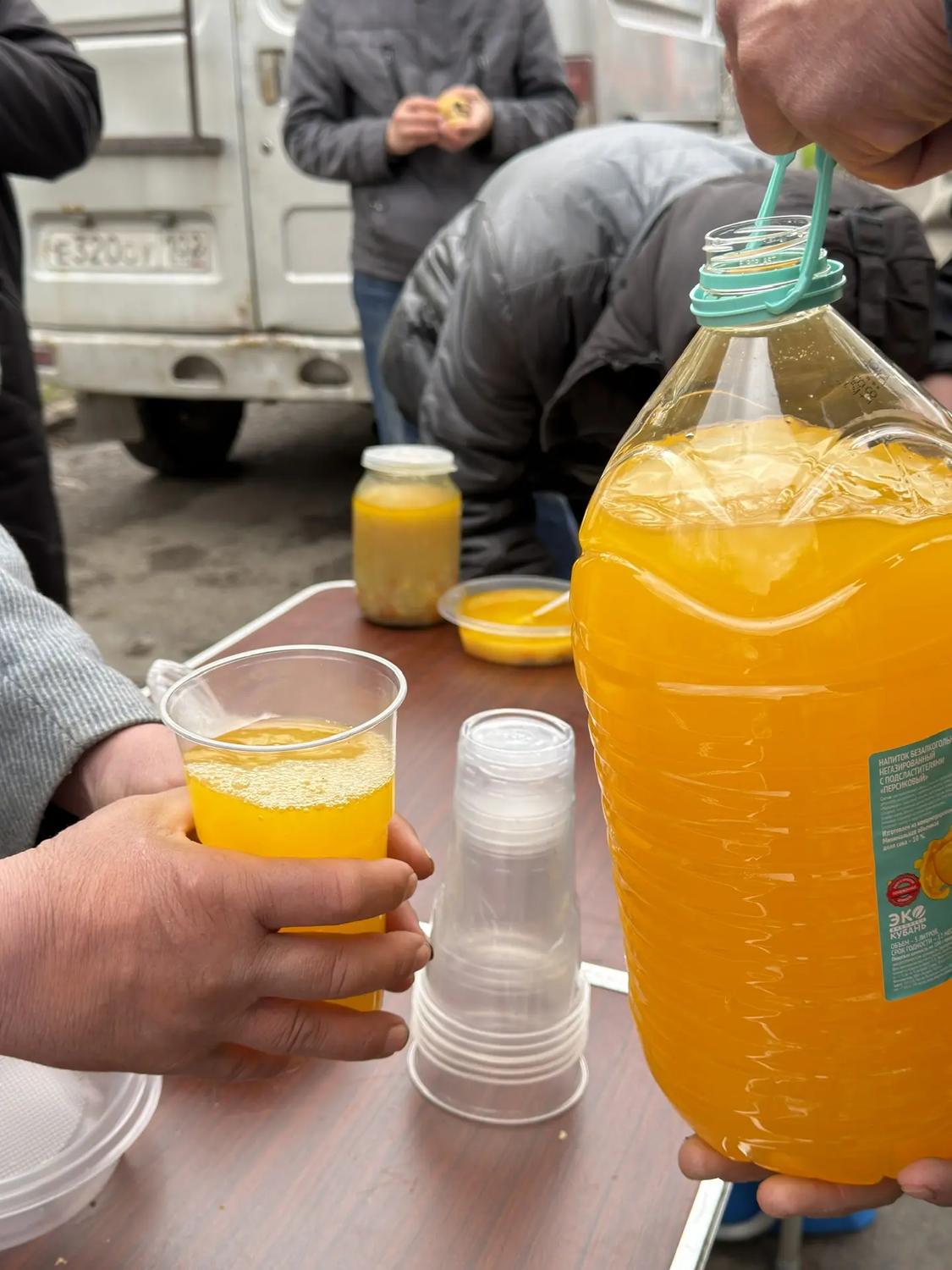 В нашем субботнем меню: очень вкусный суп-рассольник, хлеб, выпечка и персиковый сок. Равнодушных не было.