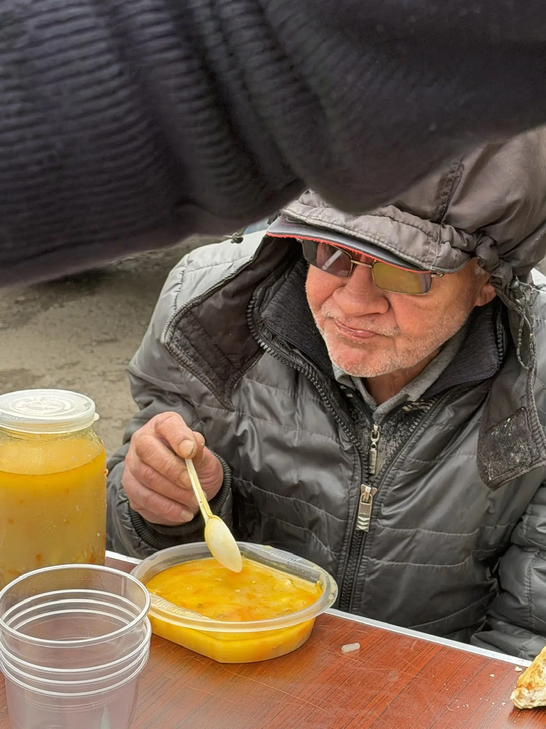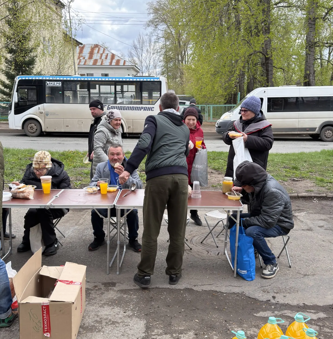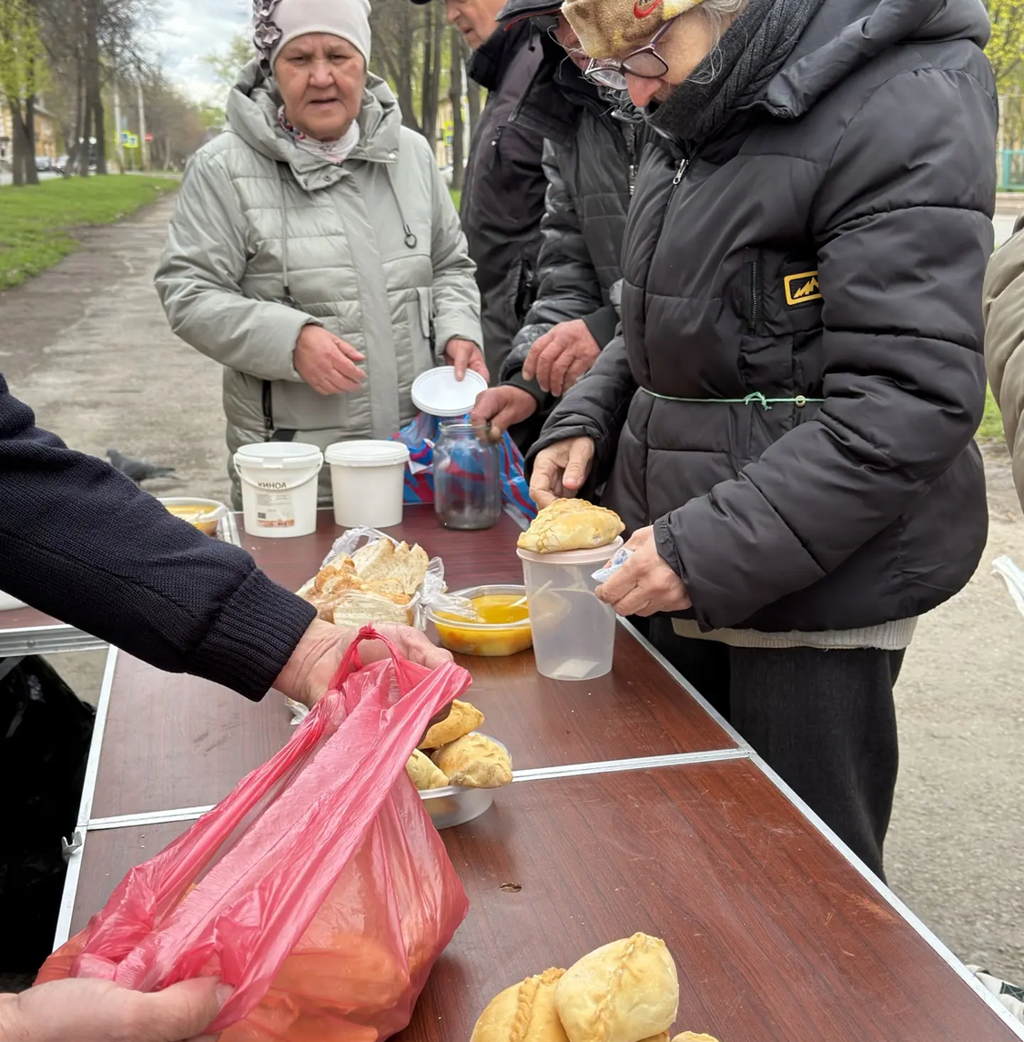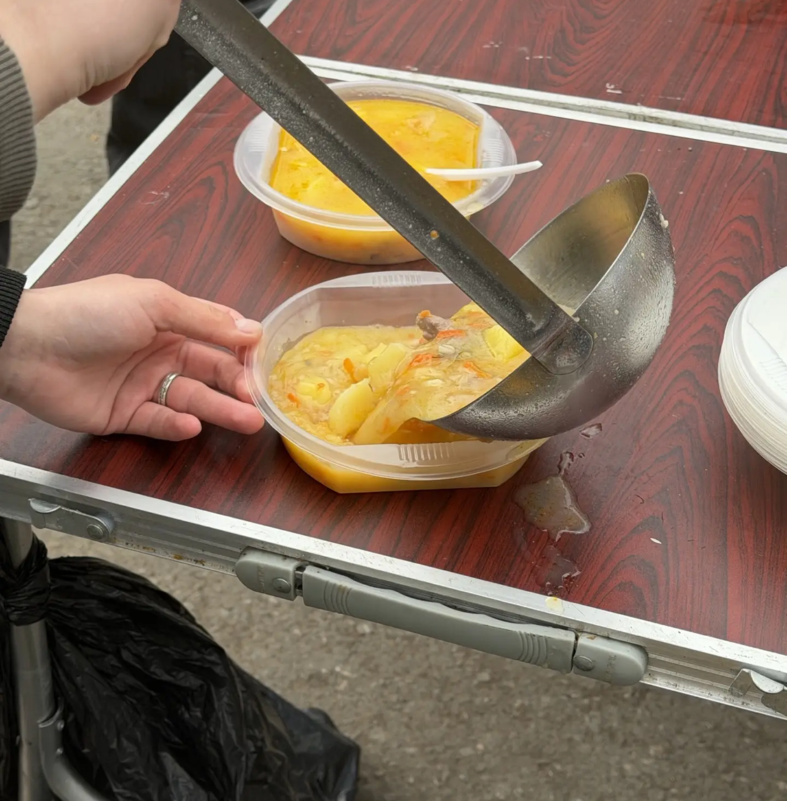В нашем субботнем меню: очень вкусный суп-рассольник, хлеб, выпечка и персиковый сок. Равнодушных не было.