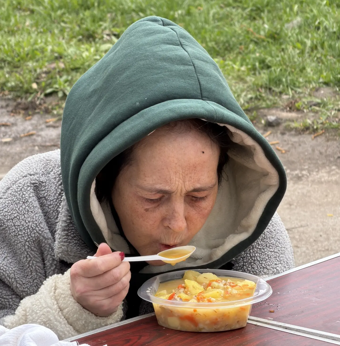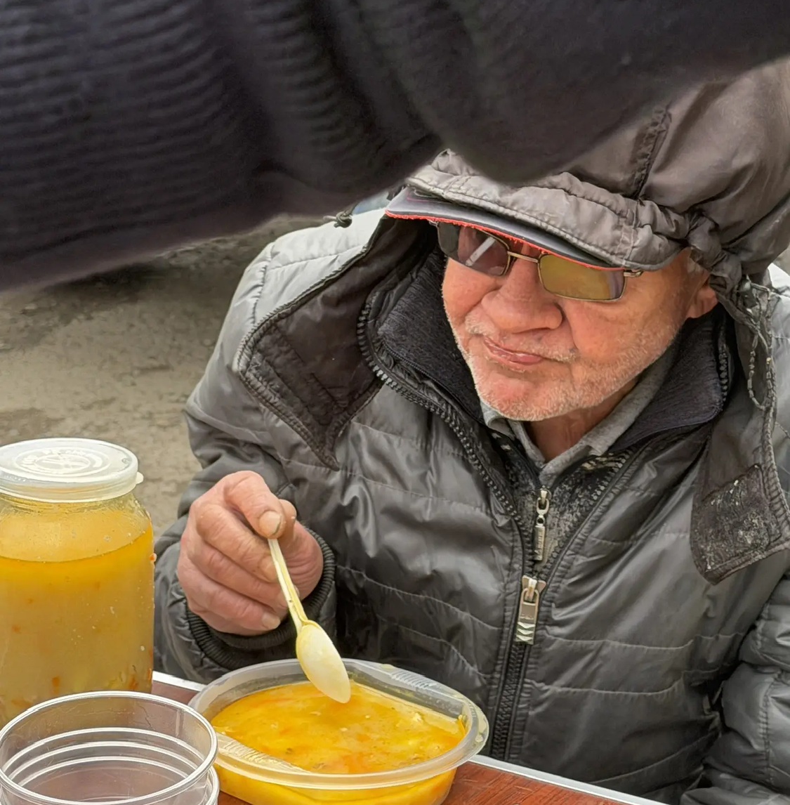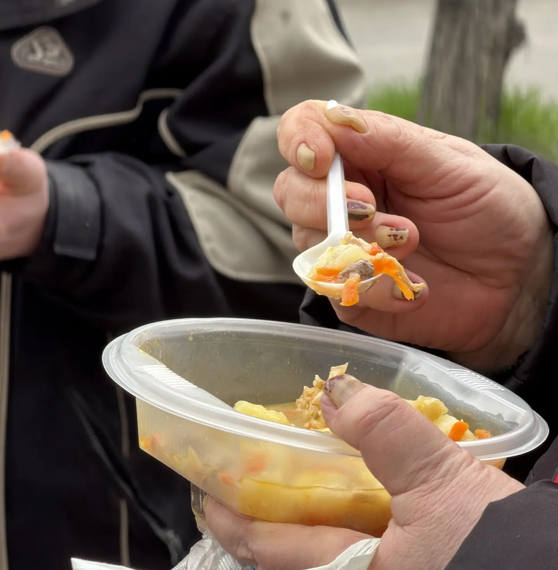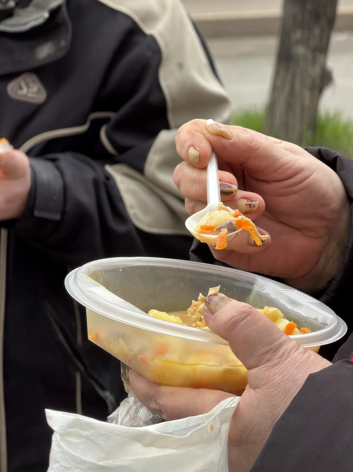 В нашем субботнем меню: очень вкусный суп-рассольник, хлеб, выпечка и персиковый сок. Равнодушных не было.