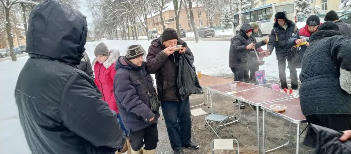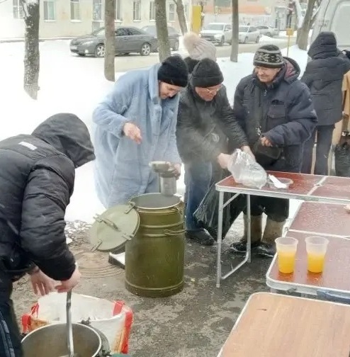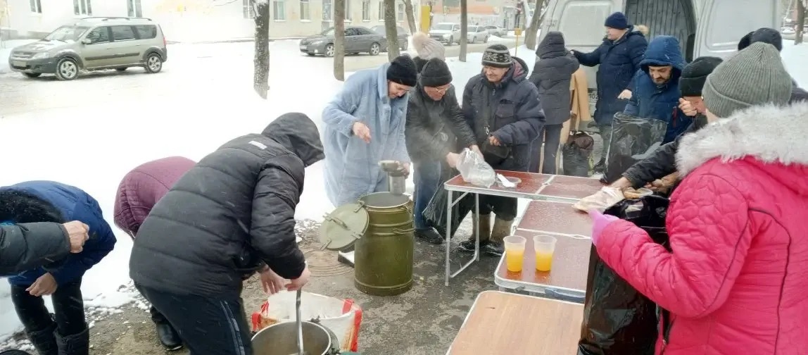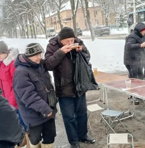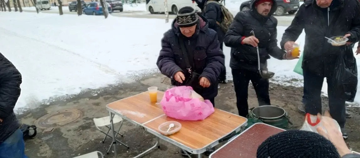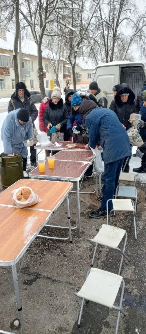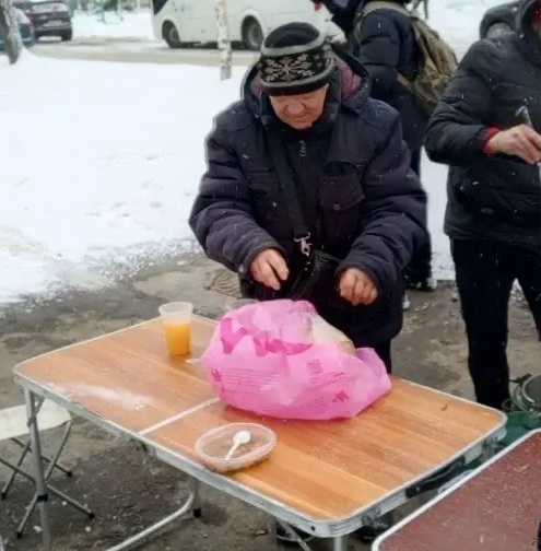 В нашем последнем в этом году декабрьском субботнем меню — рисовый суп с грибами и курицей, хлеб и фруктовый кисель. Также были хорошие сезонные вещи для раздачи нуждающимся.