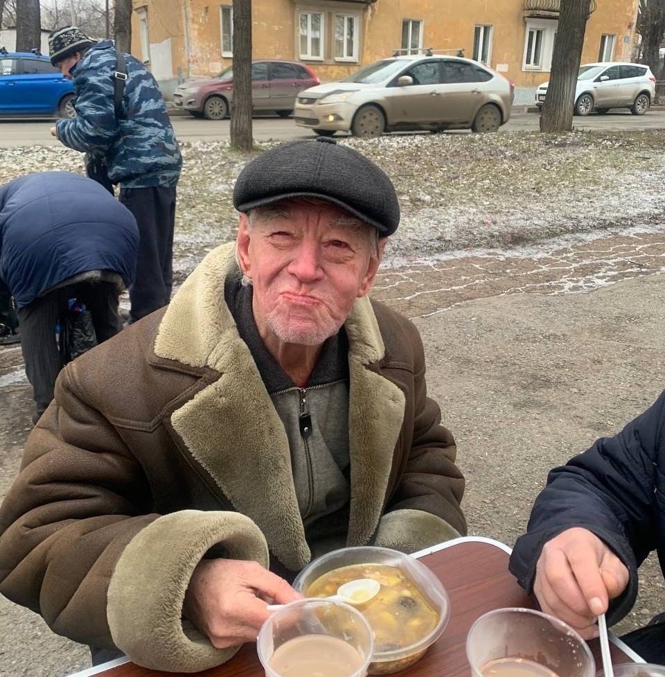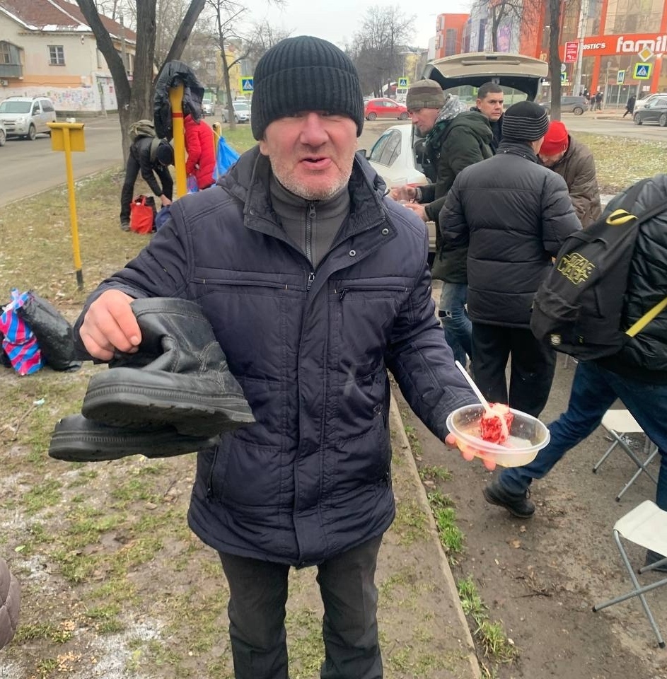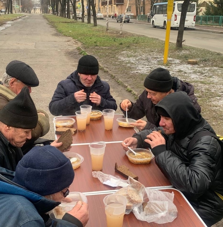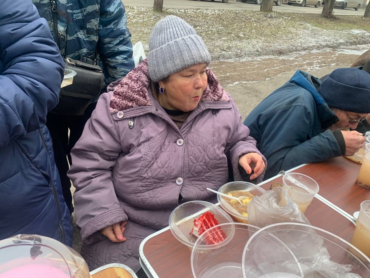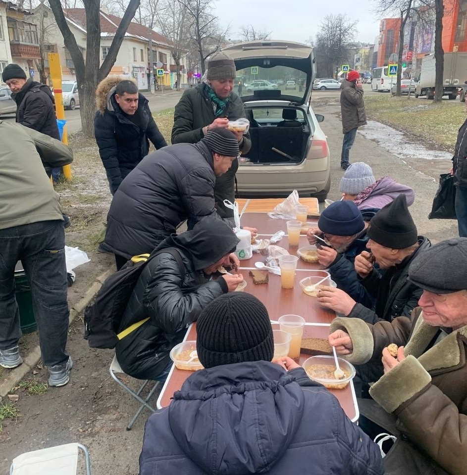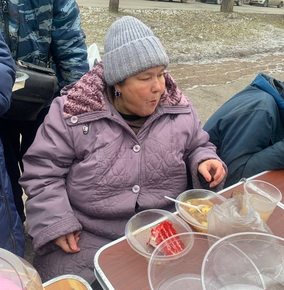 В эту субботу мы привезли нашим подопечным — гречневый суп с курицей, хлеб, кондитерские изделия и фруктовый компот