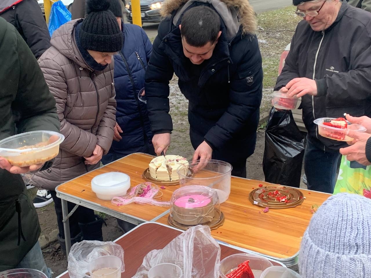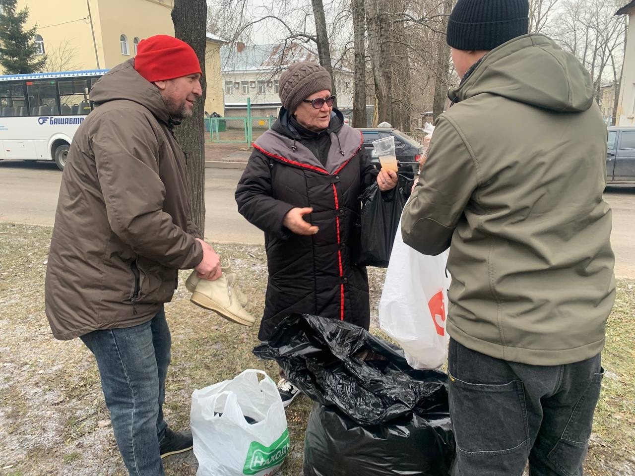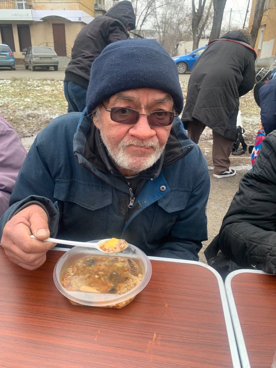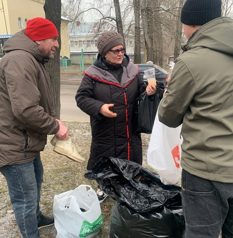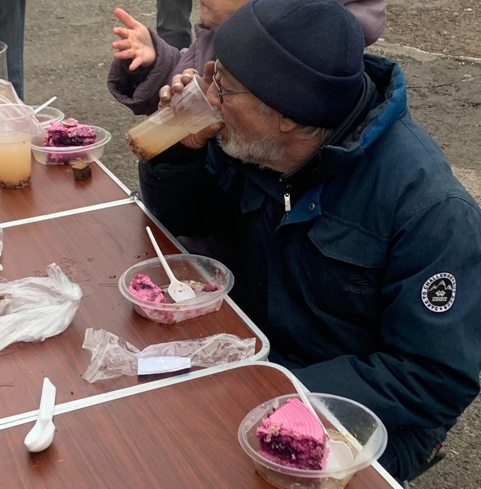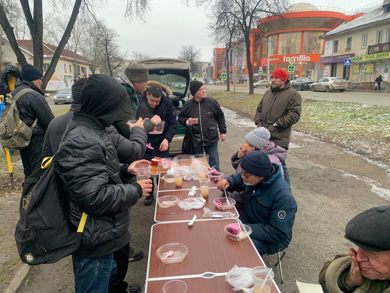 В эту субботу мы привезли нашим подопечным — гречневый суп с курицей, хлеб, кондитерские изделия и фруктовый компот