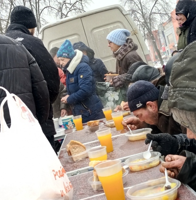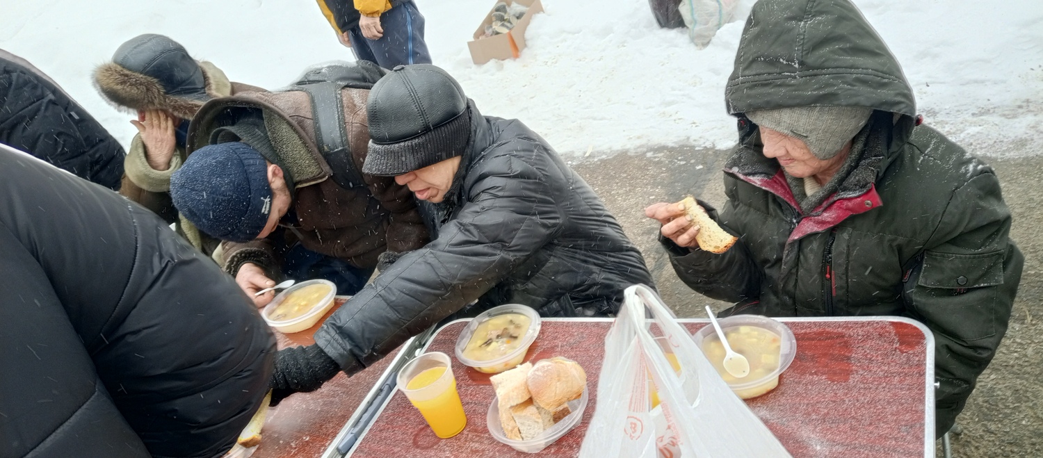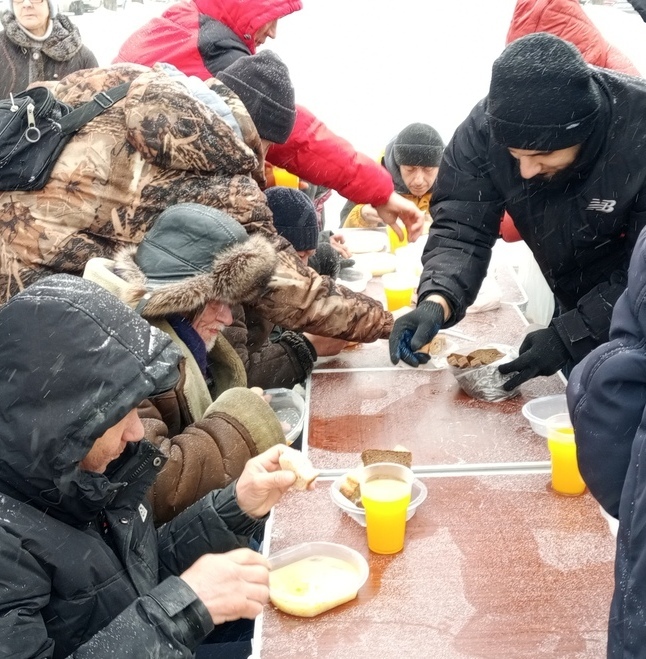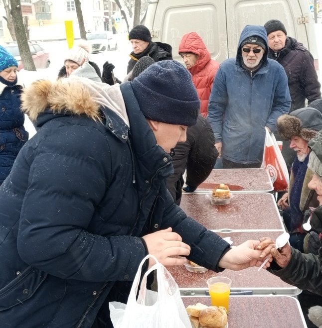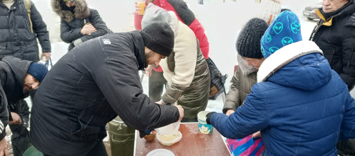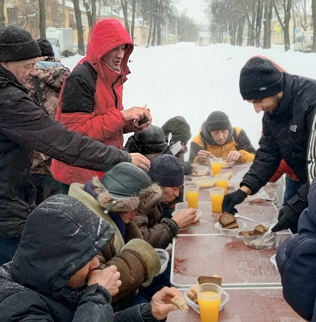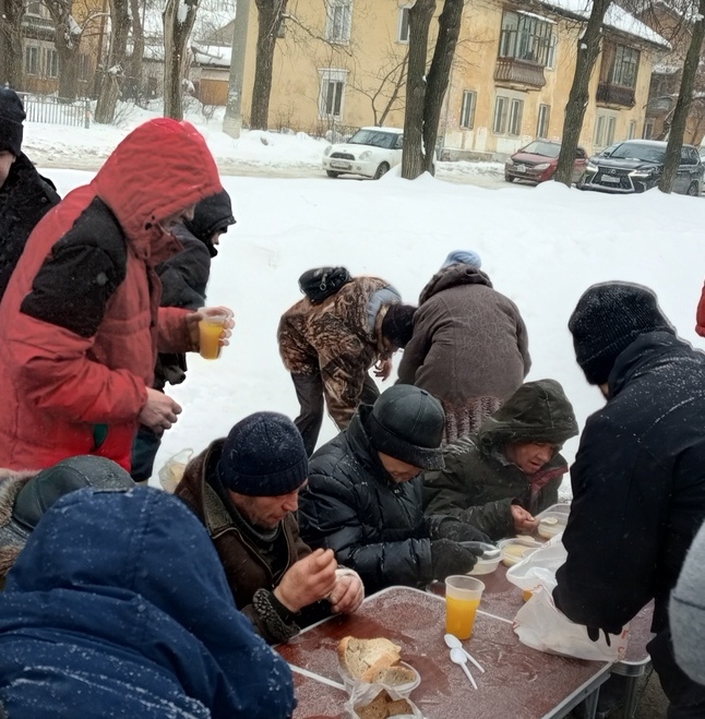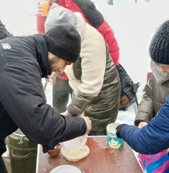 В нашем сегодняшнем меню — рисовый суп с грибами и фрикадельками, хлеб и фруктовый кисель. Понравилось всем.