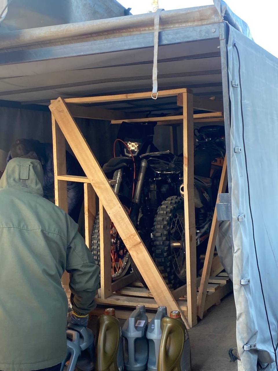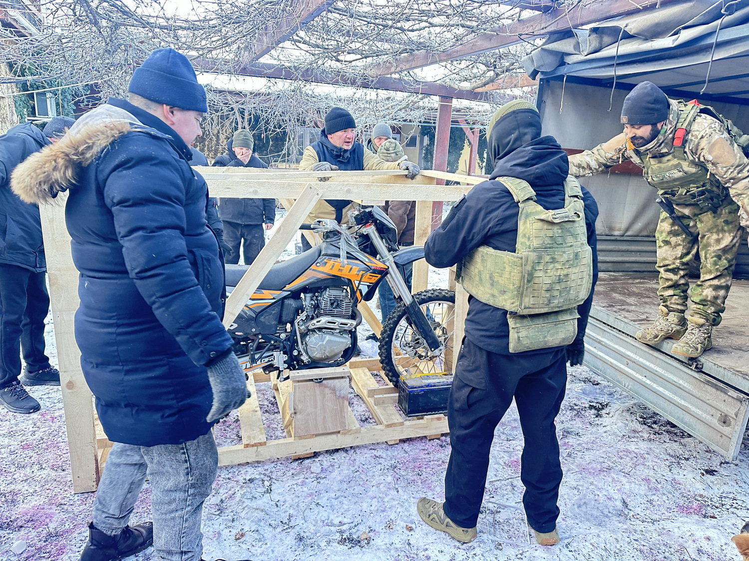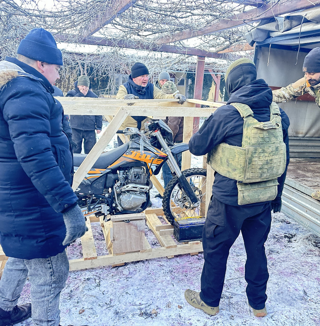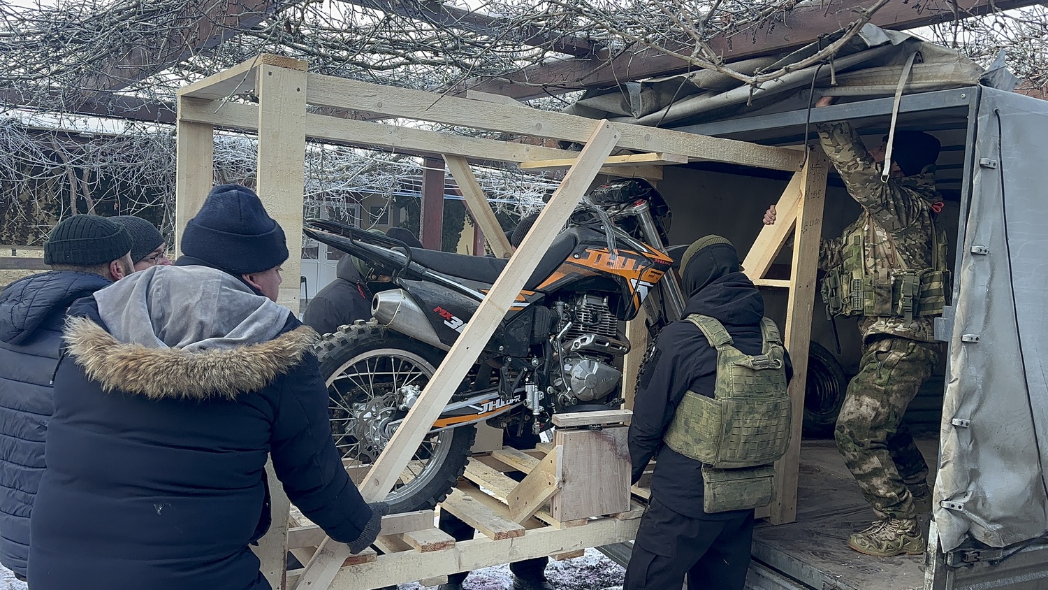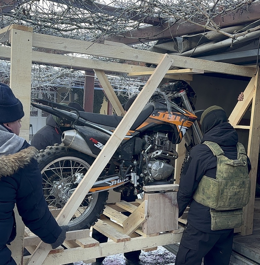 Отряду БПЛА мы передали: мотоцикл «Индуро»; дизельный генератор; детектор дронов «Булат»; маскировочные сети