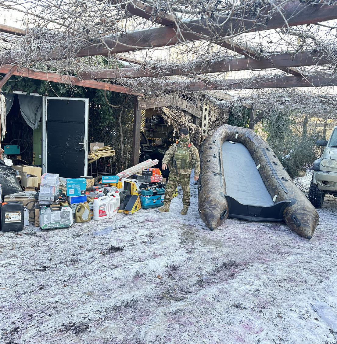Отряду катеров на Херсонском направлении: автомобиль УАЗ «Патриот»; 5-метровую усиленную лодку ПВХ; мотоцикл «Индуро»; расходники, инструменты, запчасти и масло