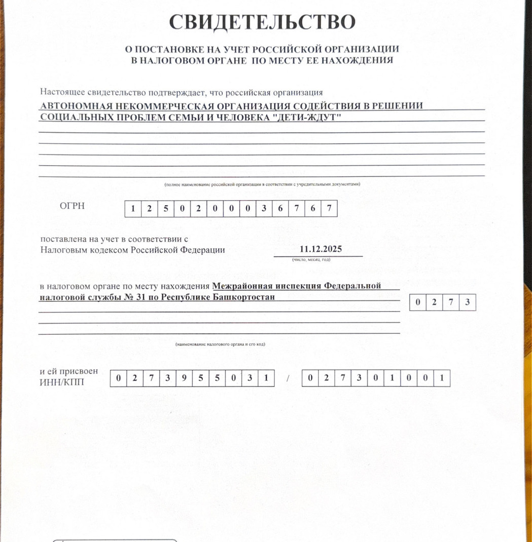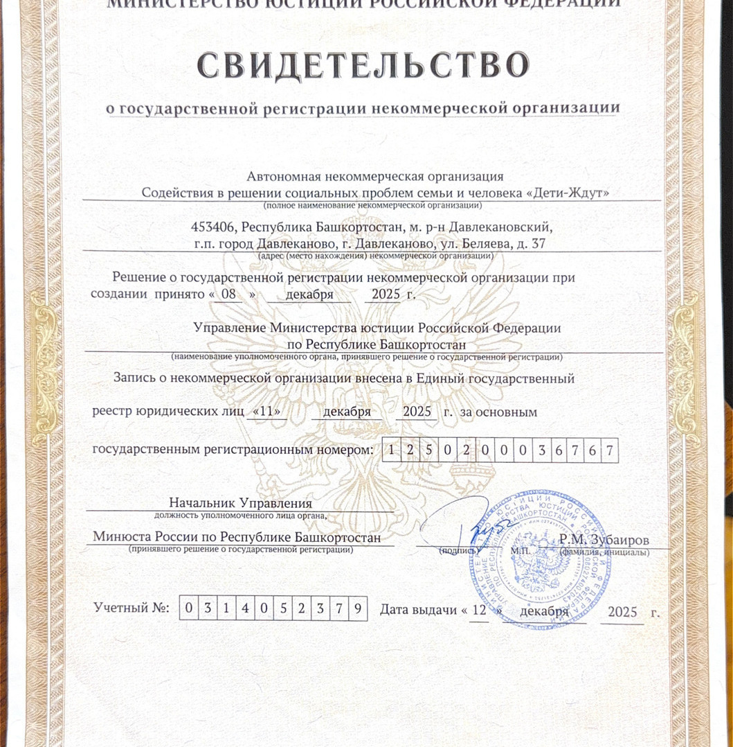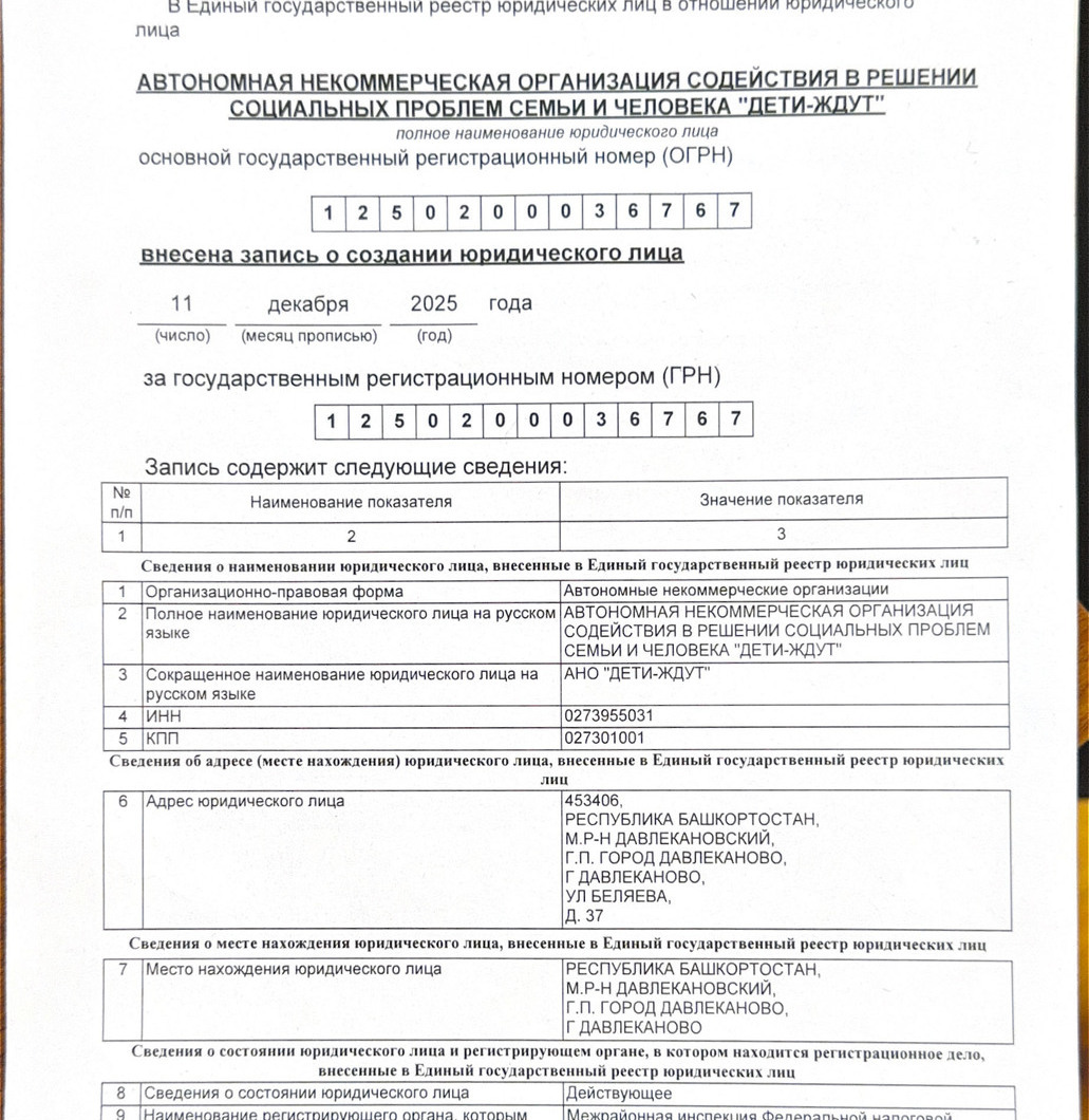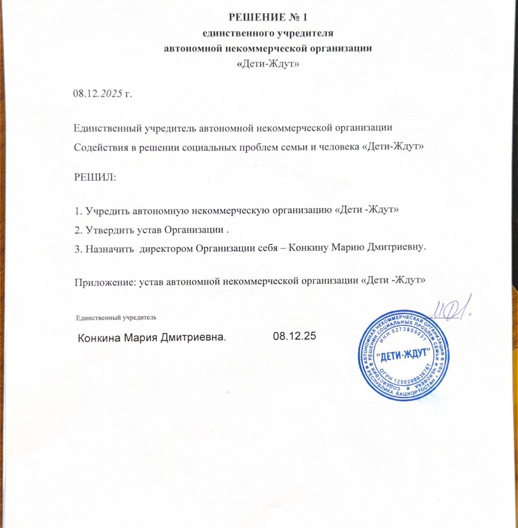 Учредительные документы АНО "Дети-Ждут"