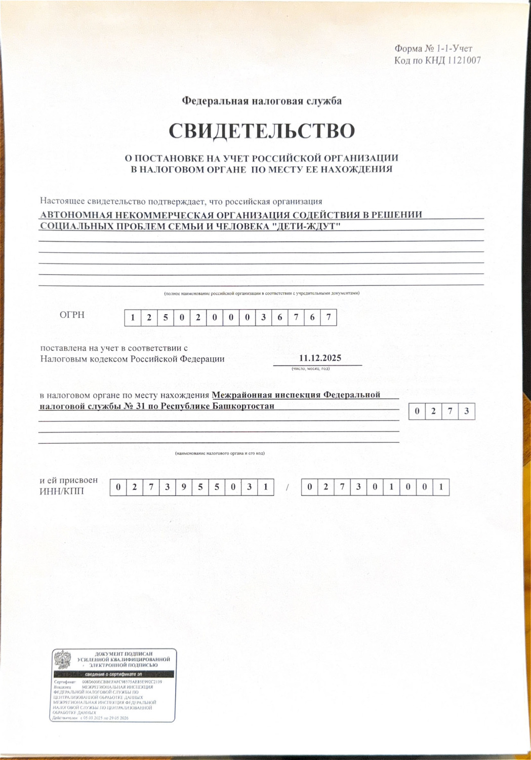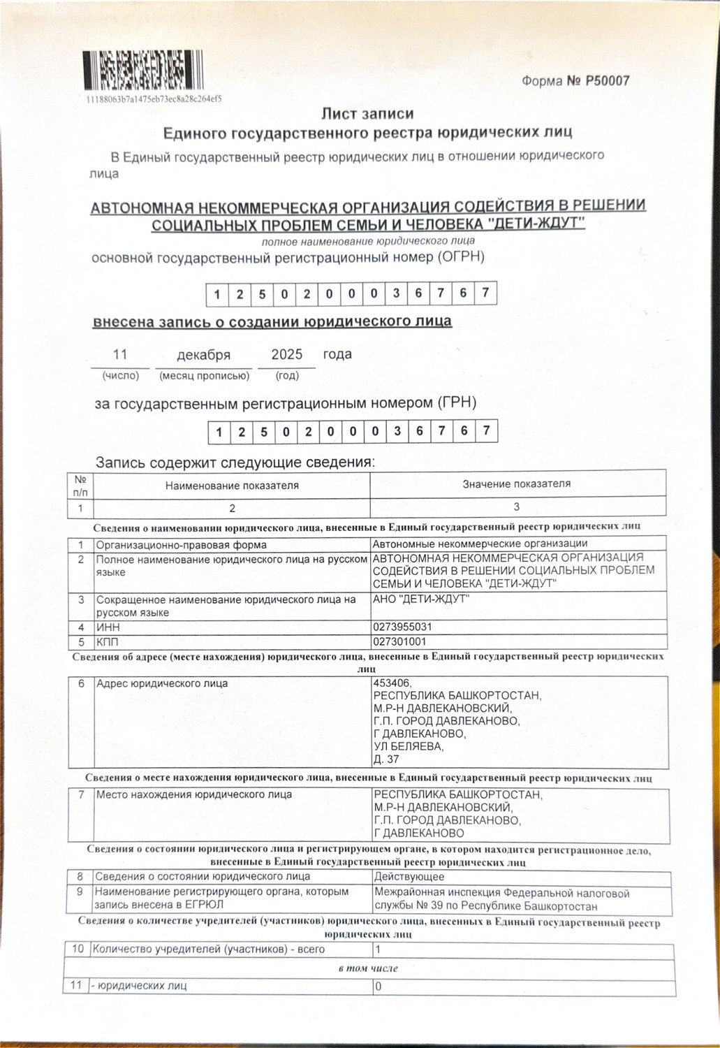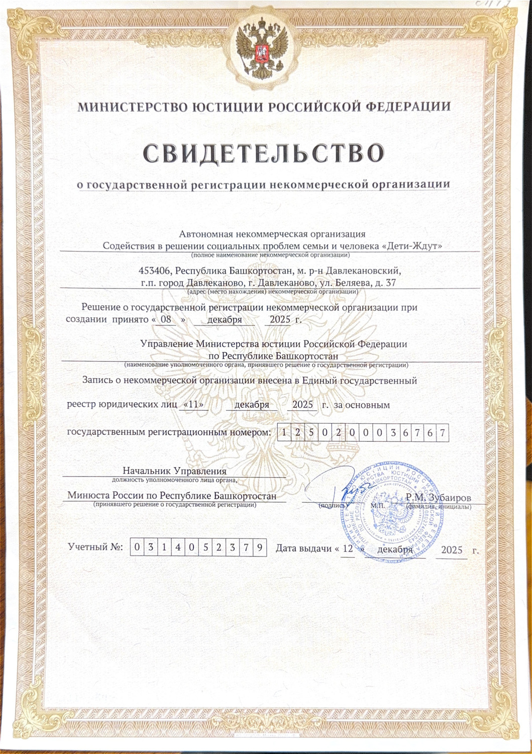 Учредительные документы АНО "Дети-Ждут"